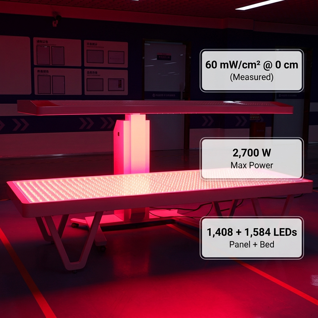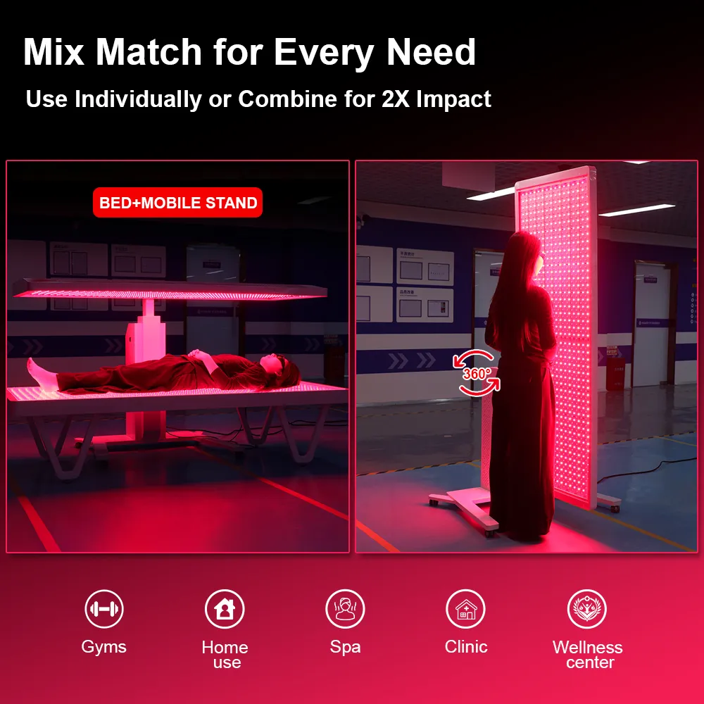 One System, Multiple Applications: A dual-structure design combining a red light panel with a red light bed. The panel can be used independently and features electric distance adjustment, allowing users to find a more comfortable and effective treatment range across different body types, sensitivity levels, and wellness goals.